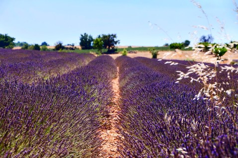 Kayalık bir tepenin üstünde kurulmuş Sault, bu sebeple alabildiğine uzanan lavanta ve buğday tarlalarını yukarıdan izleme olanağı sunuyor. Belirtmem gerekir ki aşağıdaki renklerin canlılığını yakalamak gün ışığına çok bağlı. Güneşin dik geldiği saatlerde giderseniz nerede bu renkler diyebilirsiniz. Sabah veya akşamüstü manzara için ideal zaman. Kasabanın sunduğu manzaraların bence daha güzelini Sault’dan güneye doğru ilerlerken görüyoruz.