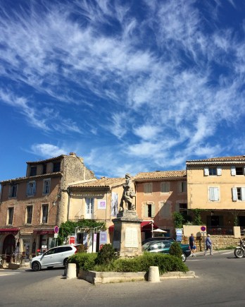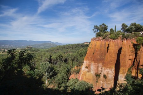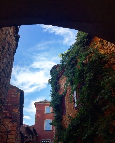 Sault’dan yaklaşık 45 dakika sonra farklı jeolojik yapısı ile Luberon bölgesinin en büyüleyici kasabalarından biri Roussillon’dayız. Kiremit rengi kayalıklar ve meşe, çam ağaçları ile çevrili, yine bu kiremit rengin hakim olduğu toprak yapısına sahip kasabaya akşamüstü gitmemiz bizim için çok güzel bir tesadüf oldu. Masmavi gökyüzü ile ortaya çıkan kasabanın muhteşem renkleri kesinlikle görülmeye değer. Dar sokakları, cıvıl cıvıl kafeleri geçip saat kulesine doğru ilerleyip başka bir panoramik manzaraya ulaşıyoruz. Vaktiniz varsa kırmızı ve sarı kayaların oluşturduğu “Ochre Trail” de yürüyüş yapabilirsiniz.